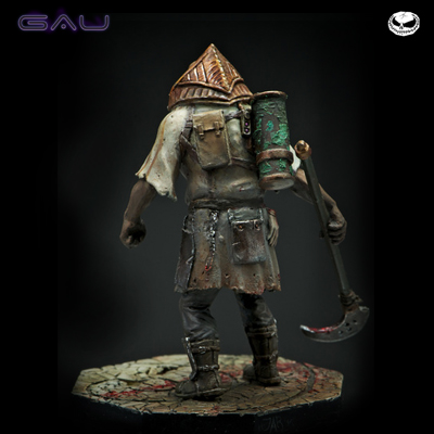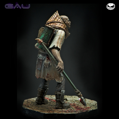 Die Figur besteht aus Weissmetall, eine Resin Base ist ebenfalls enthalten. Produkt ist nicht bemalt und zusammengebaut, es wird Kleber und Farbe benötigt.