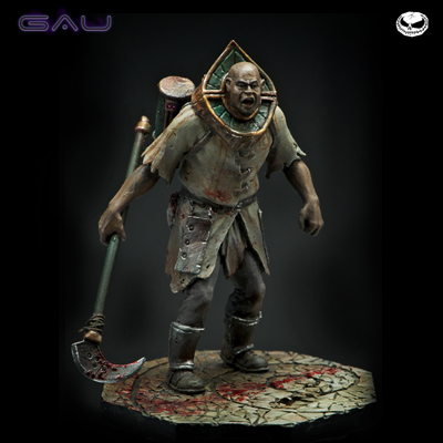 The figure is cast in white metal, a resin base is also included. Product comes unpainted and unassembled, glue and paitns are required.