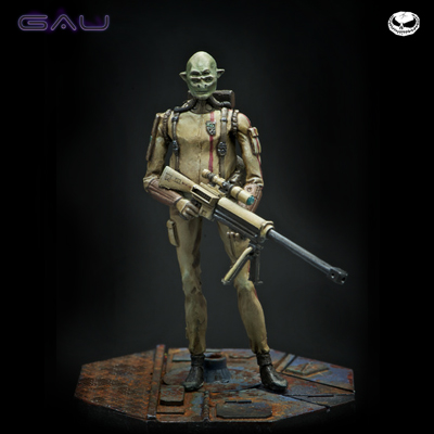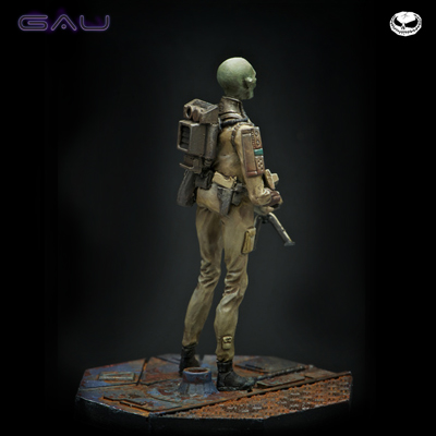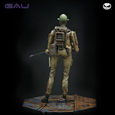 The figure is cast in white metal and includes an alternative helmet as well as alternative optional barrels for the rifle. A resin base is also included. Product comes unassembled and unpainted, paints and glue is required.