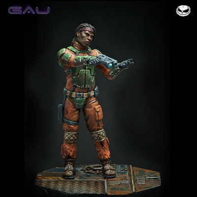 The figure is cast in white metal and comes with an alternative helmet and an alternative pistol, a resin base is also included. Product comes unpainted and unassembled, glue and paints are required.